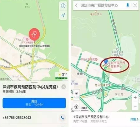 比如近日,百度地图就因“深圳导航错误”事件陷入了舆论争议。而另一知名导航App高德地图最近也“自身难保”——有市民用高德地图搜索“深圳市疾病预防控制中心”出现了诡异的一幕。同一个位置,深圳市疾病预防控制中心变成了“深圳市丧尸预防控制中心”,控制中心居然被赋予了两个名字。这着实让人哭笑不得,成为网友茶余饭后的谈资。有网友表示“天天在丧尸中心上班”,还有网友调侃“谁不听话,就送去丧尸中心”。